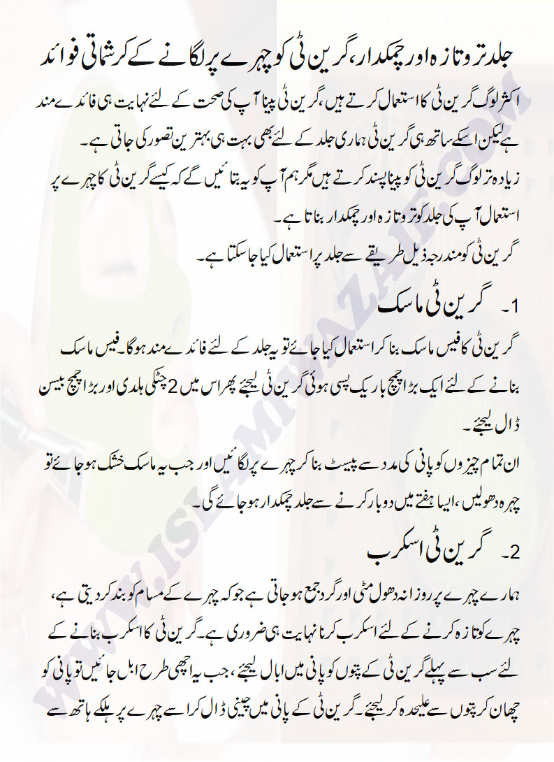 Green Tea Face Mask If used as a mask, it will be beneficial for the skin. To make the face mask, take a teaspoon of finely ground green tea, then add 2 tsp turmeric powder and a tablespoon of gram flour.